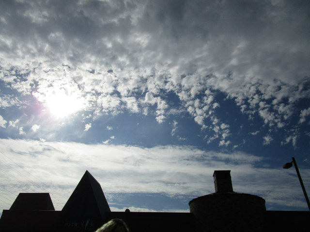 今朝はおだやかないいお天気。青空でおひさまでていて、特徴的な秋の雲もいっぱい。