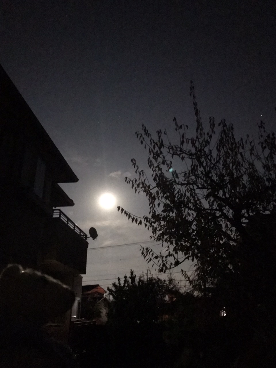 昇りたてのお月様はとても大きくて、眩しいくらい。明日はほぼ皆既月食が、見られるといいな。