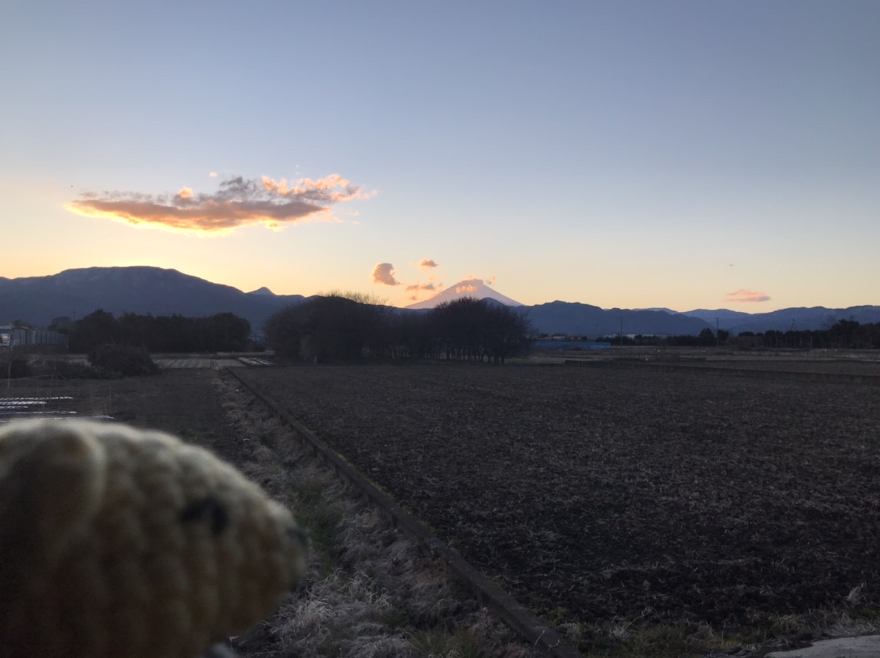 浮世絵のような富士山と雲。空の色のあまりに美しさに思わず車をとめてパシャリ。