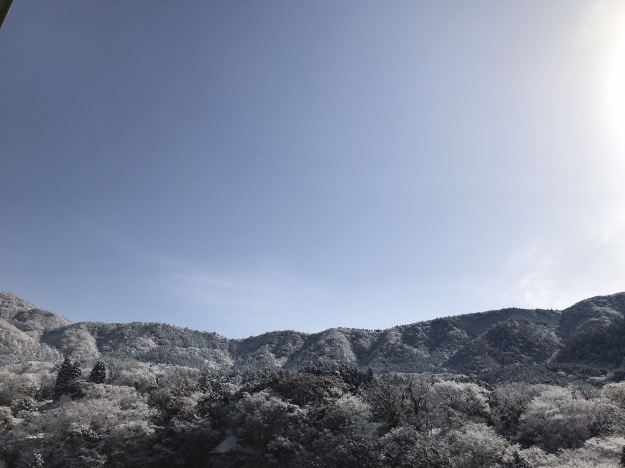 朝から気持ちの良い青空。箱根の山は雪景色。