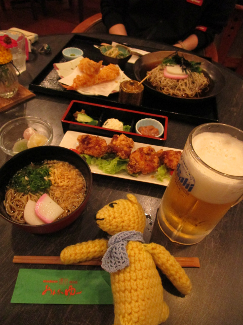 もう5時で暗いので自動的にお腹も空いてまず腹ごしらえ、後温泉。諸々の疲れも吹っ飛んだ。