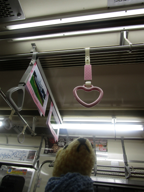 ハートの吊り革の下に座っていたようで。降りる前に気づいてびっくり。久しぶりに見たな。