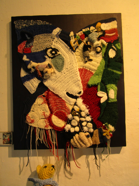 2人展「絵の具と毛糸」最終日に滑り込み。名画や有名シーンの数々が編んである天才的作品群。