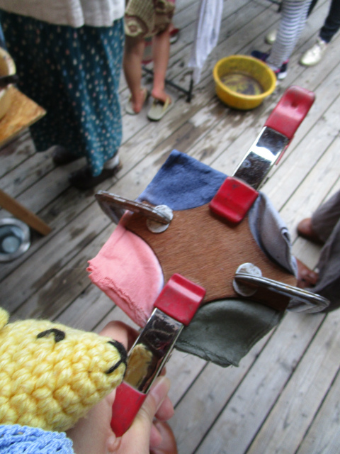 ところを板でギュッと挟んだら、染料を刷毛でちょちょっと。で広げたらもう完成!楽しかった♪