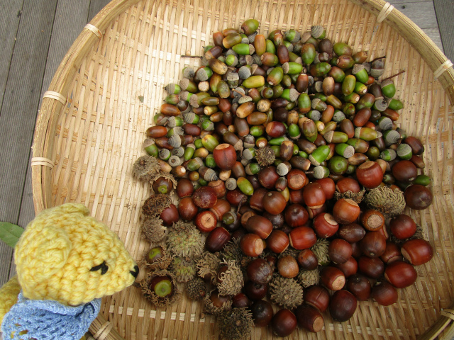 いろんなどんぐりがかごにいっぱい。