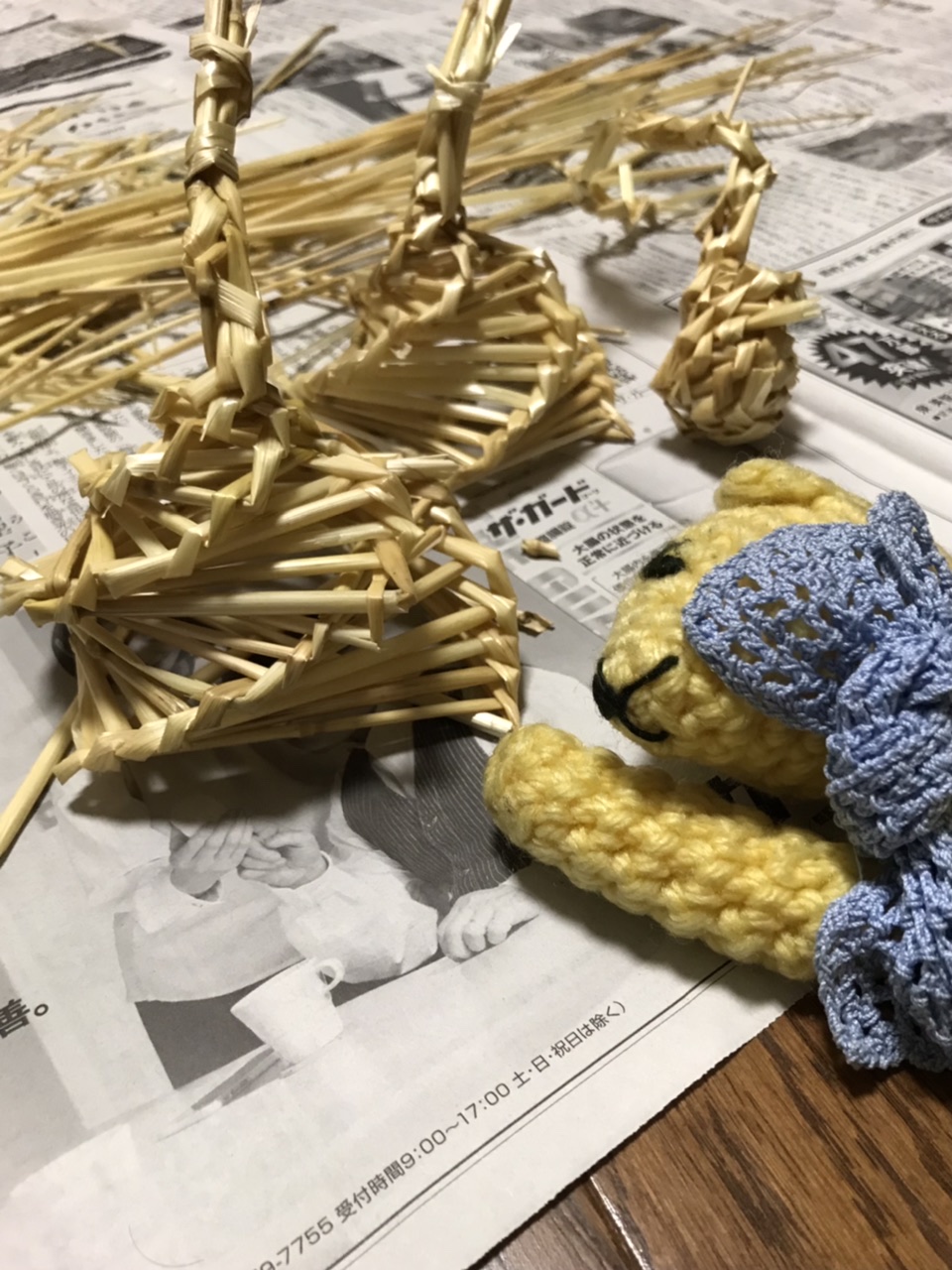 先日、麦畑でいただいてきた麦わらで、久しぶりに螢籠をつくった。作り方をすっかり忘れてて、