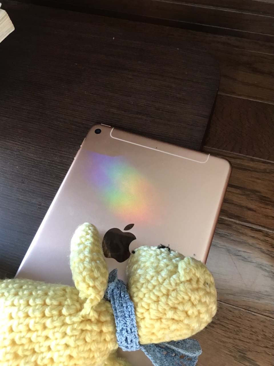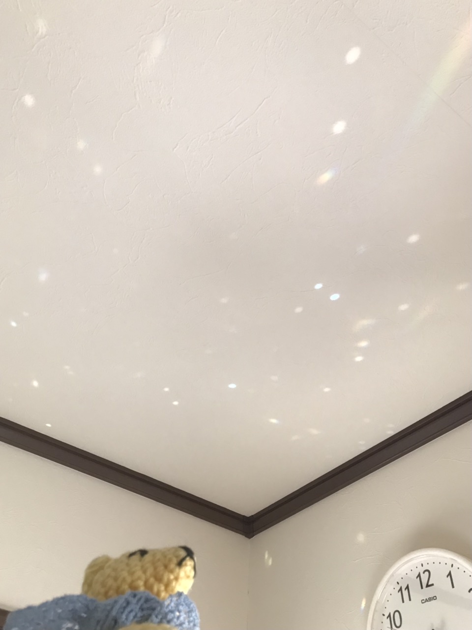 サンキャッチャーのプリズムが床に天井にキラキラ。