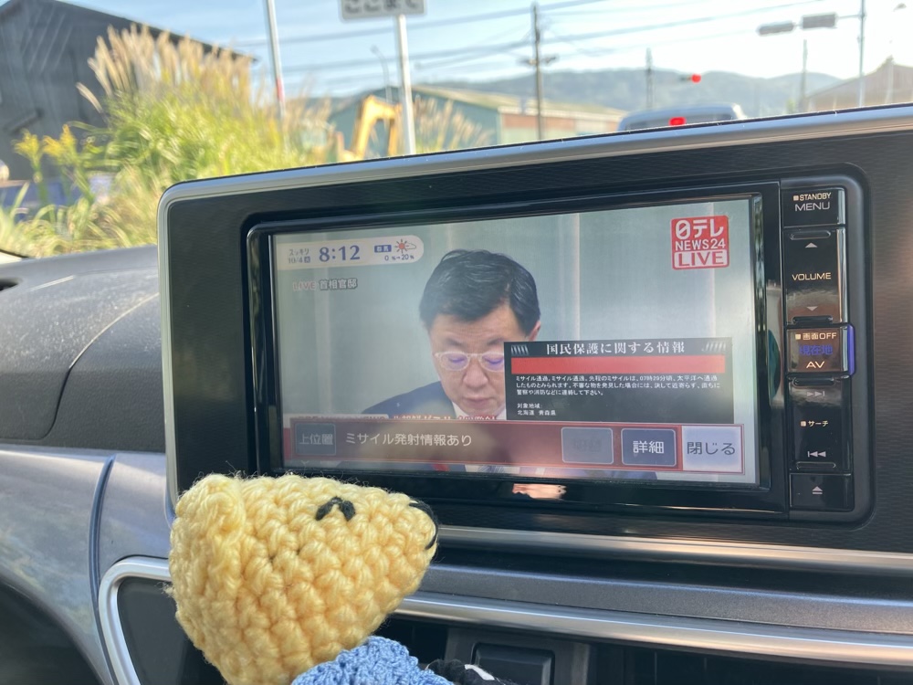 そういえば昨日の朝、出勤中にカーナビにミサイル発射情報が出た。