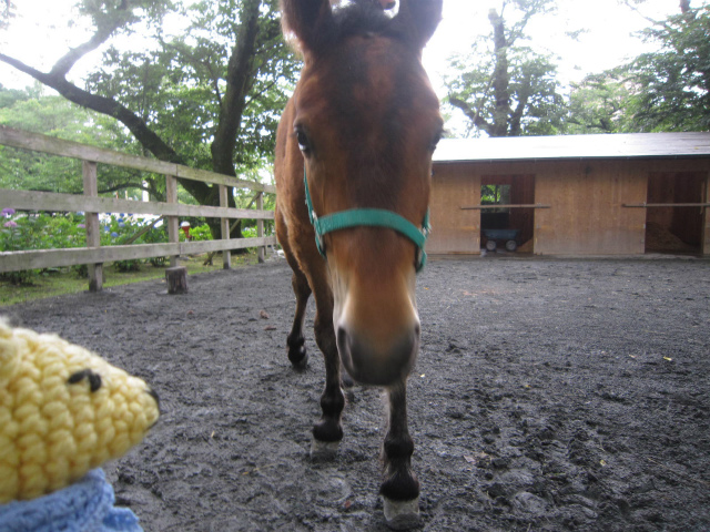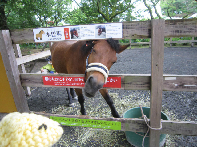 時之栖で去年の春から木曽馬2頭が暮らしていているらしい。今回初めてご挨拶。