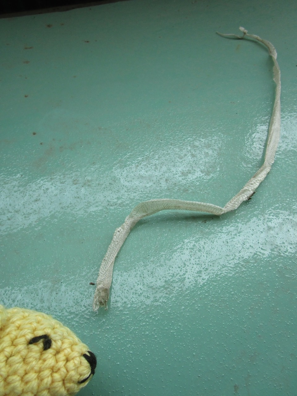 見に行ったら。なんとヘビの抜け殻ー!土用の丑の日、ウナギより長いものを見てしまった