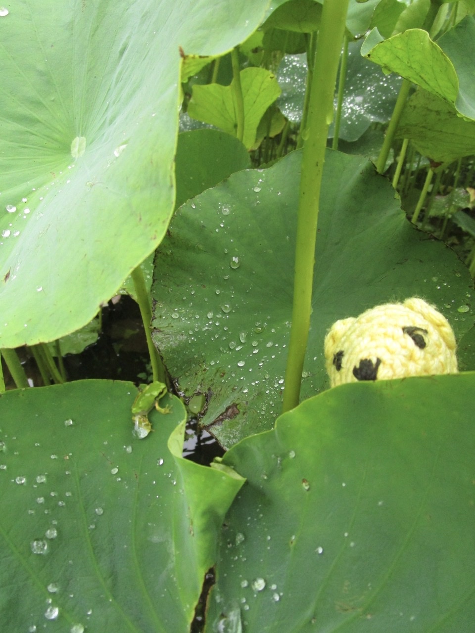 蓮池で、小指の先くらいの小さなアマガエルをたくさん見かけた。