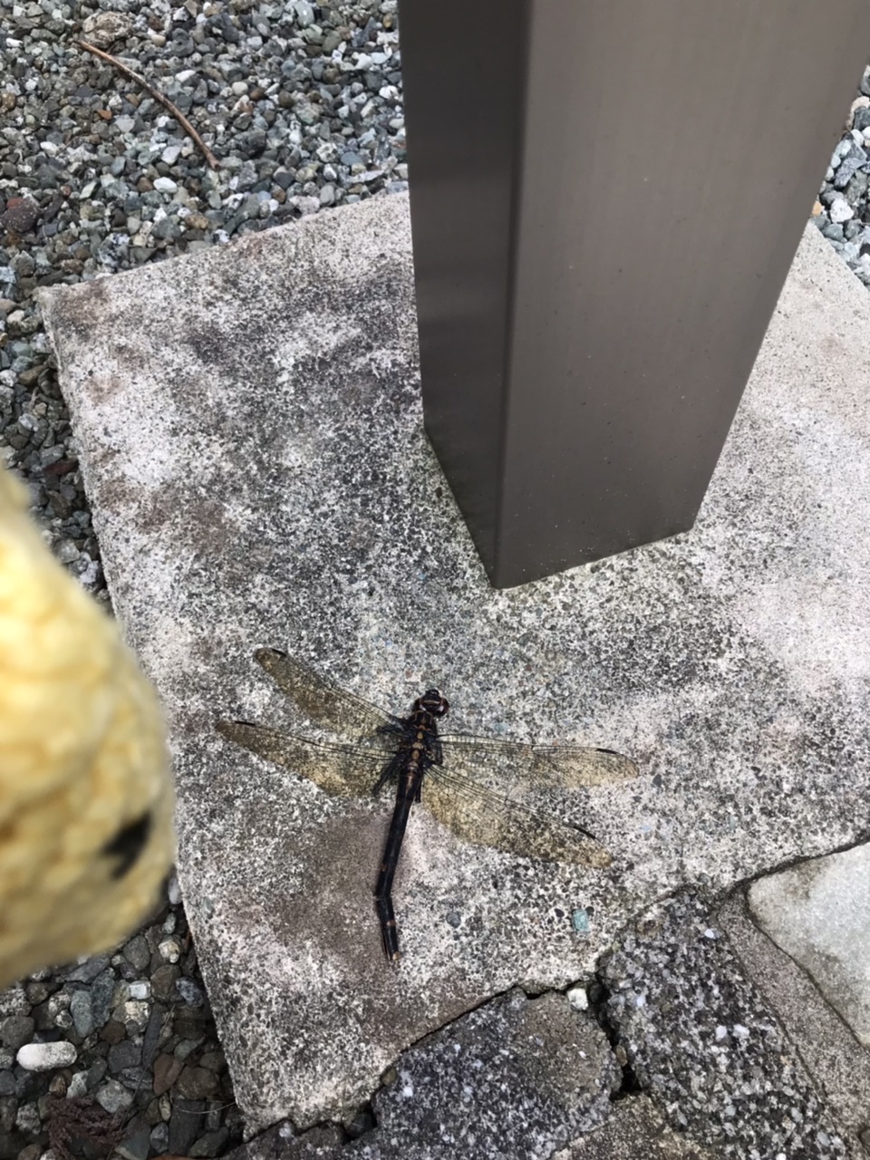 大きなトンボ!と思ってよく見たら頭も尻尾ももげて死んでいた。