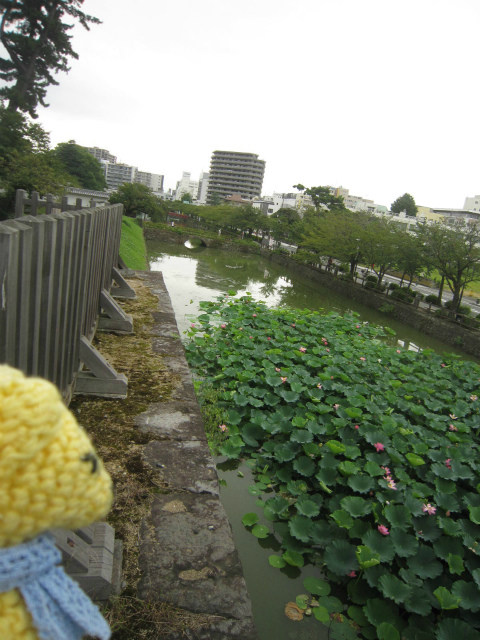 小田原城のお堀の蓮、三ノ丸小学校側のほうはまだ咲いている。