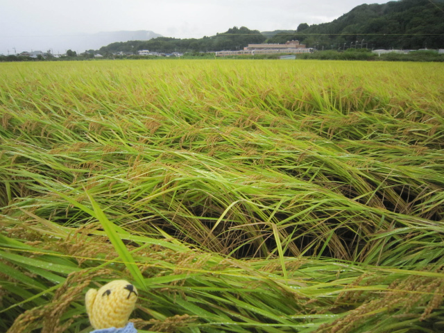 もうすぐ刈り取り時期のたわわに実った稲穂。