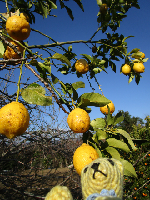 金柑やらレモンやらがどっさりなっているので、もぎにゆく。でもまだまだもぎきれん。