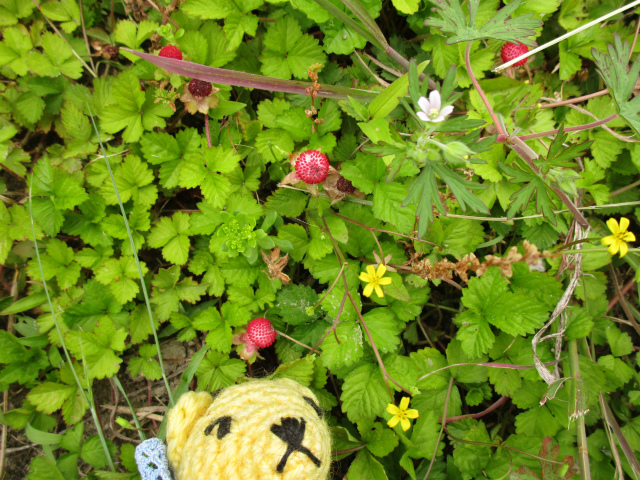 畑のあぜをよくみると、綺麗な黄緑の絨毯にいろどりどり散っていてとても可愛い。