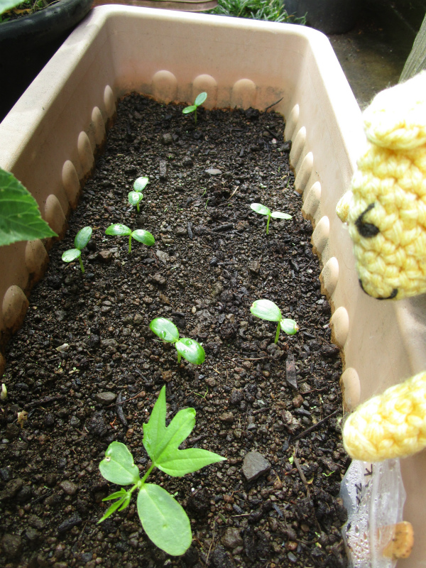 気温が高くなってきたら、ぴょこぴょことオキナワスズメウリの芽が。
