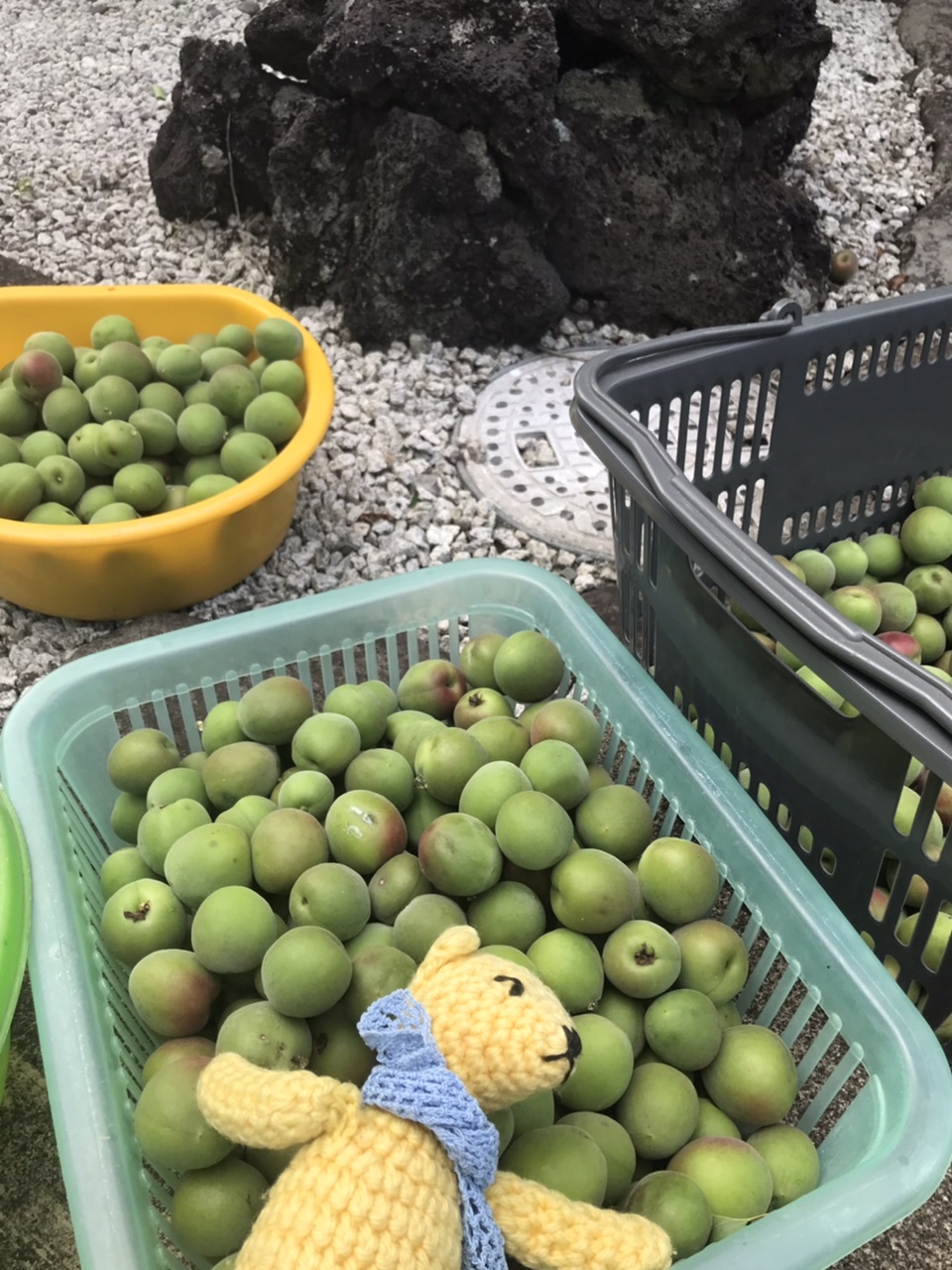 昨日庭の梅をもいだ。ちょっと触るとポロポロと枝から落ちて、もぎ頃の感じ。なかなかきれいな梅。