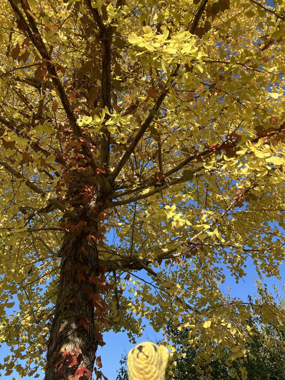真っ青な秋空に銀杏の葉が真っ黄色に輝いて。