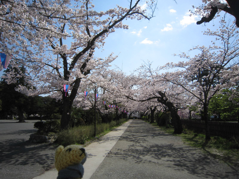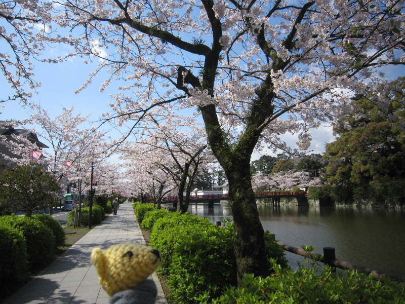 青い空の下、お堀の桜もちょうど満開!