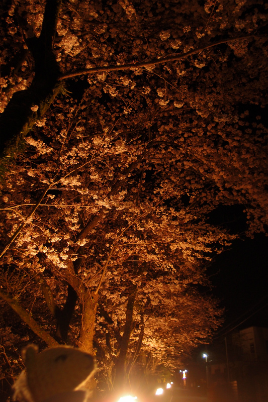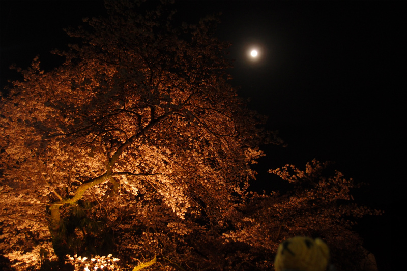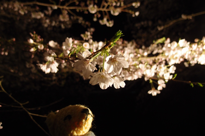 予定では昨日までのはずだった夜桜ライトアップが今日まで延長されたので夜桜見物へ。