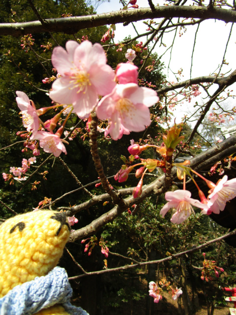 吾妻神社で河津桜がちょうど咲き始めていた。