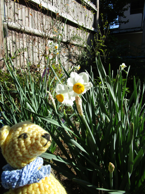 山茶花がきれいに咲いている時期に、水仙も咲きだすのはちょっと珍しい。