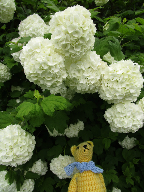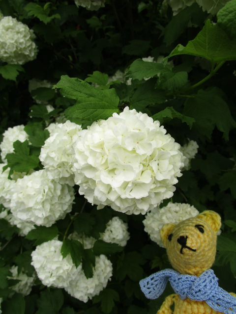 スノーボールと大手毬。どちらも真っ白、今が見頃。