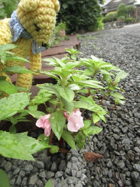 背の高さが15センチにもならないうちに、花をつけたホウセンカ。