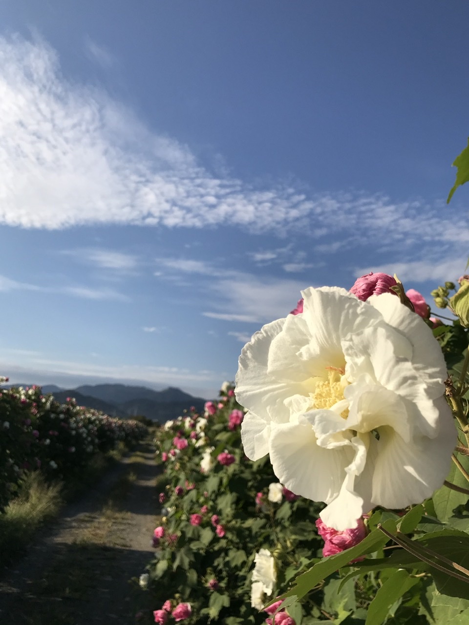 昨日、山北へ行った帰り道、そういえばそろそろかなと酔芙蓉農道をのぞいてみたら。
