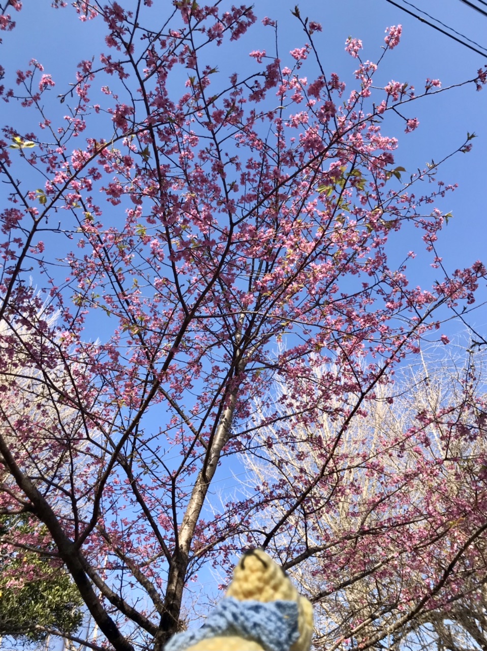 綺麗なピンクの寒桜が青空に映えています。