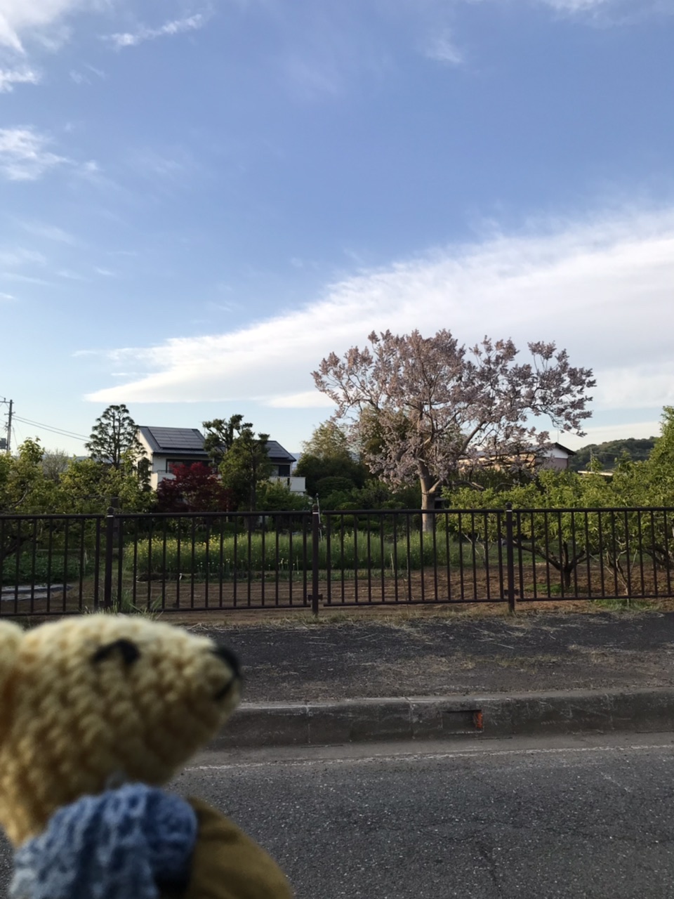 大きな桐の木が花盛り。この木、確か海外の品種だったような。