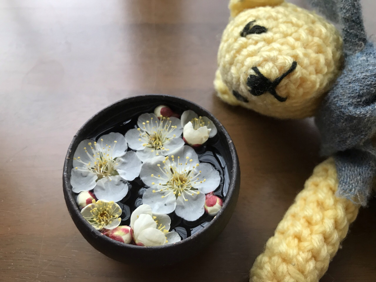 とってきた梅の枝からポロポロと落ちてしまった蕾は、水に浮かべておくといい。