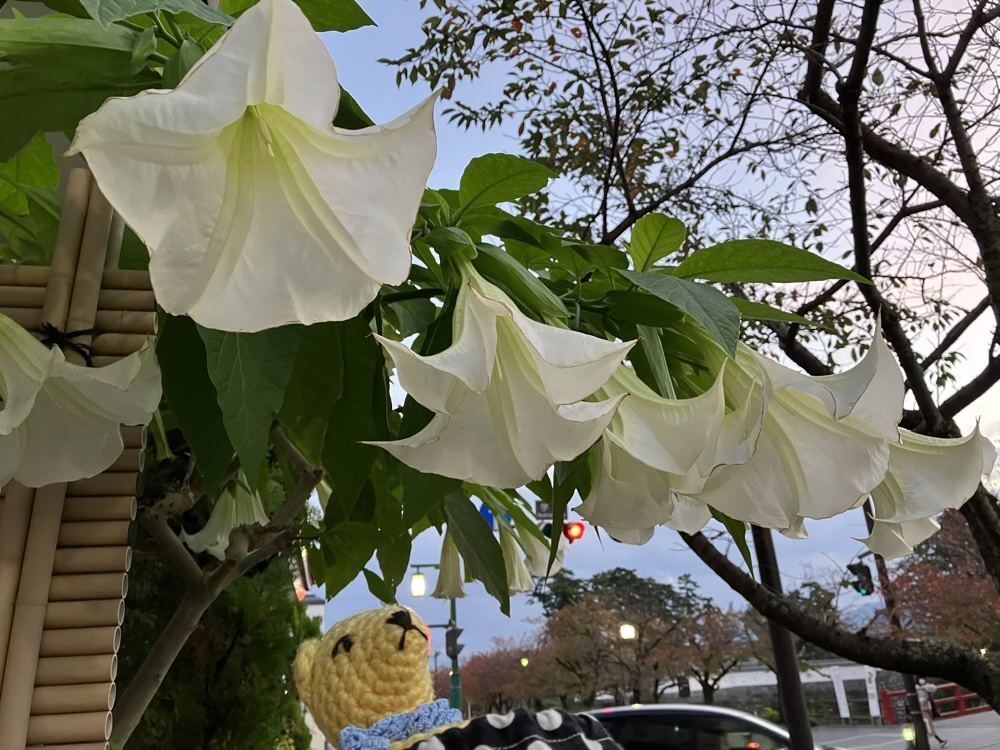 夕暮れ時に真っ白な朝鮮朝顔の花。