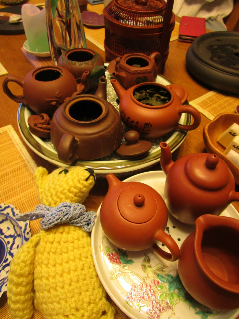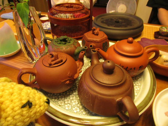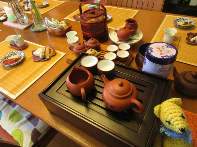 中国茶を皆で飲もう!ということで催された中国茶会。飾りっぱなしだった茶器も本領発揮できて