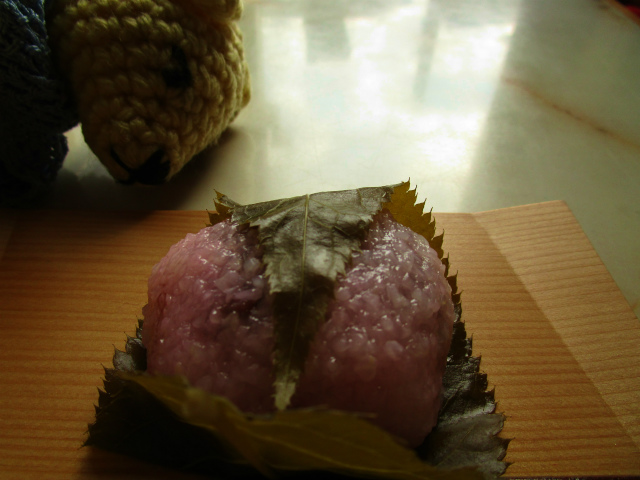 和菓子屋の店先に「桜餅」の幟をみつけ、買って帰る。