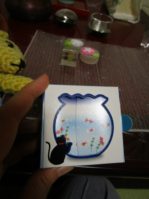 気分だけでも涼しげに、ガラスの菓子器に琥珀糖の金魚すくいとゼリー菓子の朝顔と。