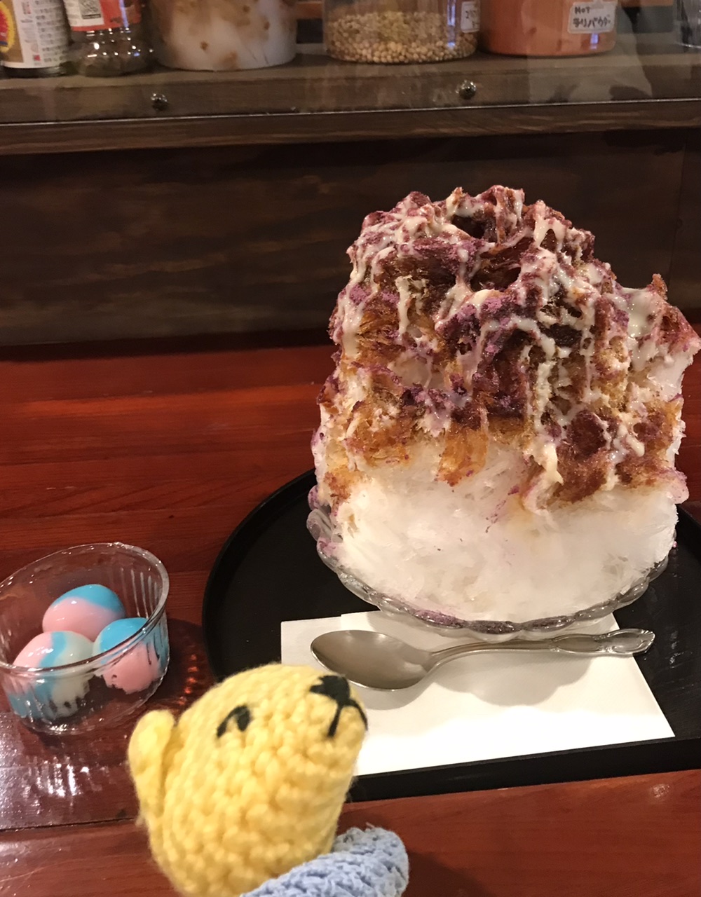 昨日はすみれカフェ貸切で浴衣deかき氷!今期初かき氷は紅いも黒蜜、練乳&白玉付き。