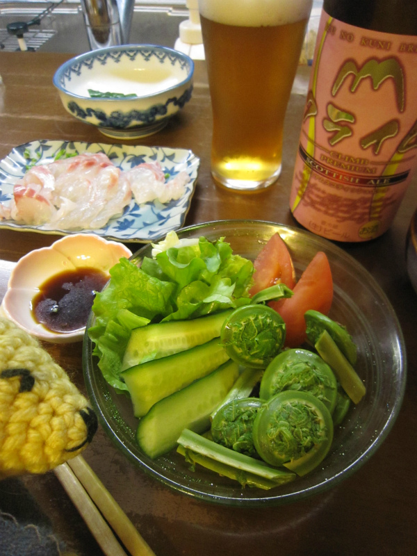 出たての柔らかい渦まきのサラダ。おいしかった。