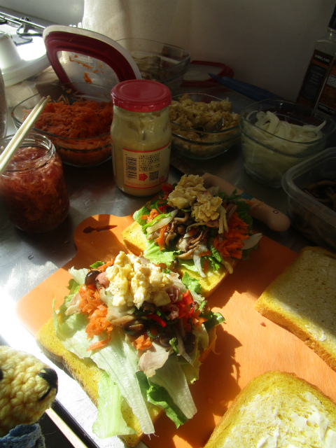 秋の味覚たっぷり挟んだサンドイッチを青空の下でいただき、元気もりもりになりました。