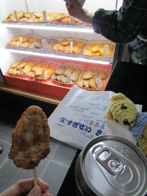 かまぼこ通りを初の食べ歩き。すぎせいではビールもセット販売、店先で食べられる。旨ーい!
