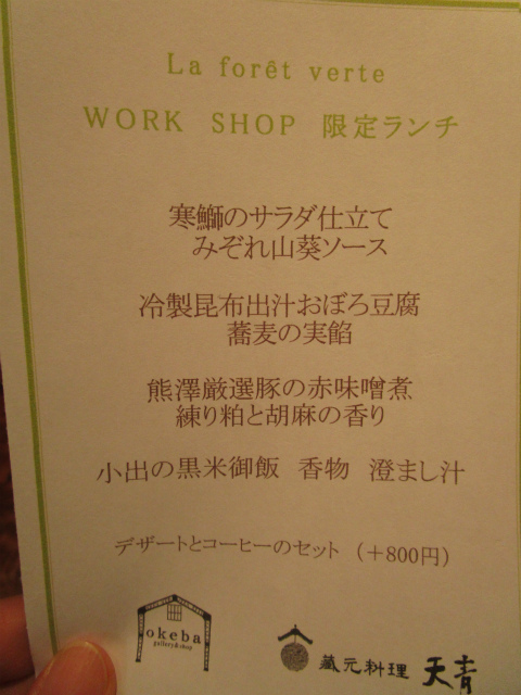 なんと昨日のワークショップは、天青のWS限定ランチ付。かご膳での美しく美味しいランチ。