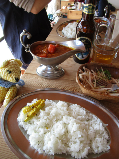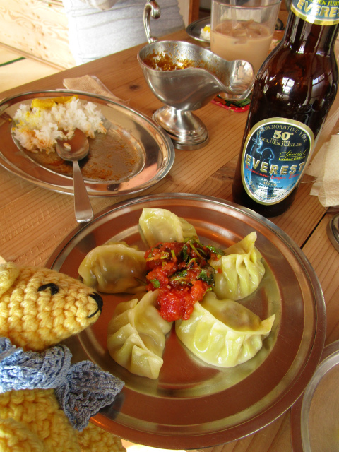 昼間っから旨い旨いモモ(ネパールの蒸し餃子)やチキンカレーをいただいきつつビールなんて!