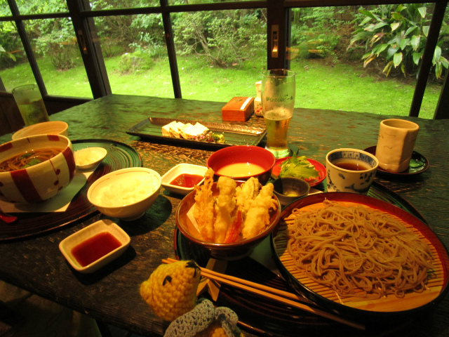 美しい緑をのぞむ席で、蕎麦や湯葉をいただく。ふらりと来て、なんて贅沢な時間。