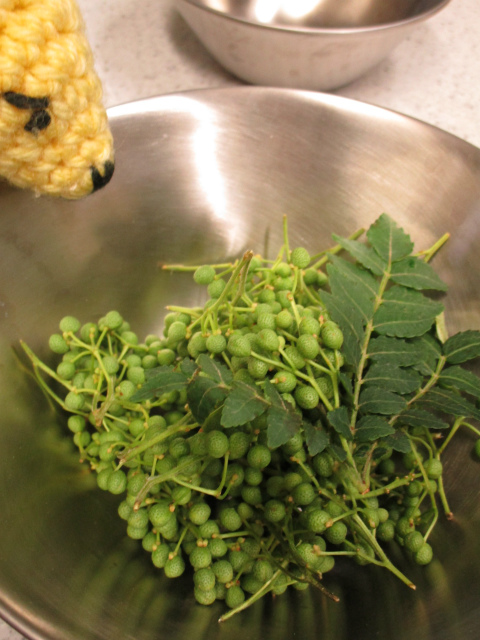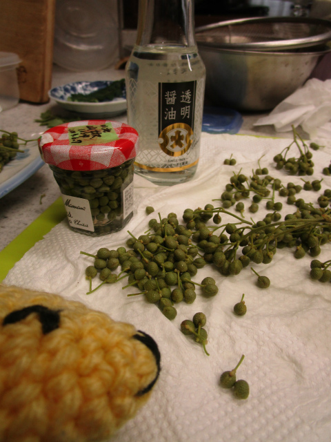青々としてきれいな実山椒が売っていたので、醤油漬けにしようと買ってきた。