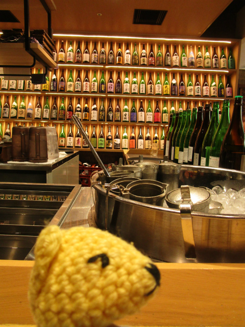 カウンター席で目の前には冷酒、奥は一升瓶の壁。今度は飲みにいこうっと。