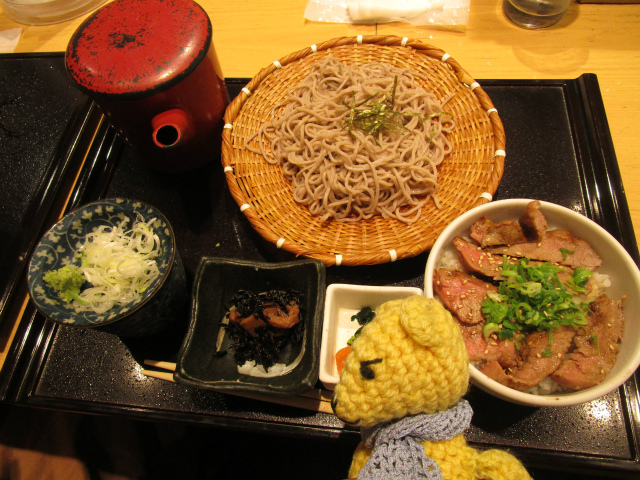 観劇の前にランチをば。名前に惹かれて吸い込まれたお店で「ざる蕎麦とビフテキ小丼」 。