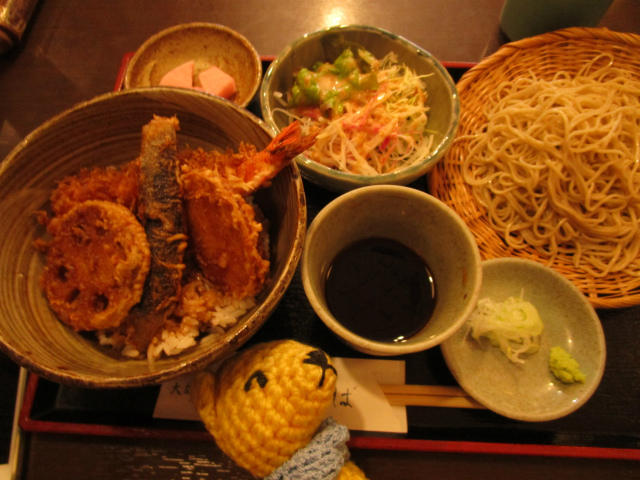 蕎麦天丼セットを頼んだら、次の人から「ご飯が品切れで・・・」と言われていた。なんかラッキー。
