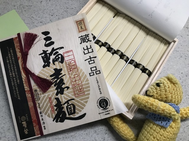 いただきものの三輪素麺。桐箱入り。コシが違うね。