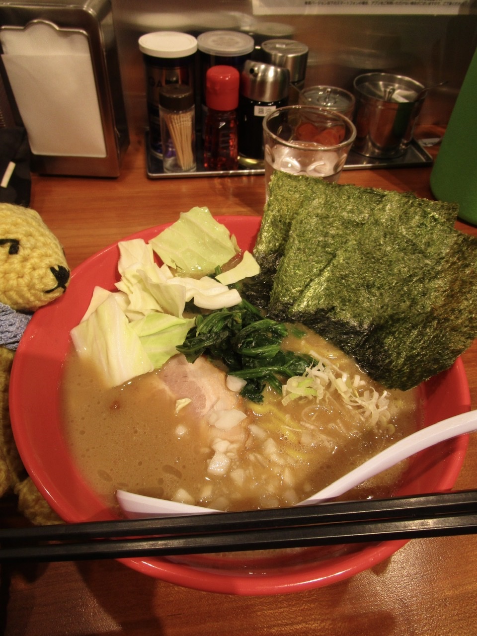 そんなわけで夜ラーメン 濃厚豚骨醤油のヤバイラーメン中盛り!お腹いっぱい!満足。